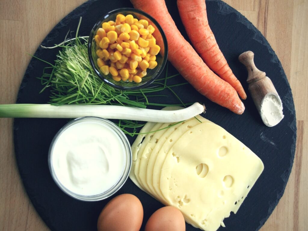 - Kloßteig mit saurer Sahne, Mozzarella, Gemüse, Ei und Salz vermengen
