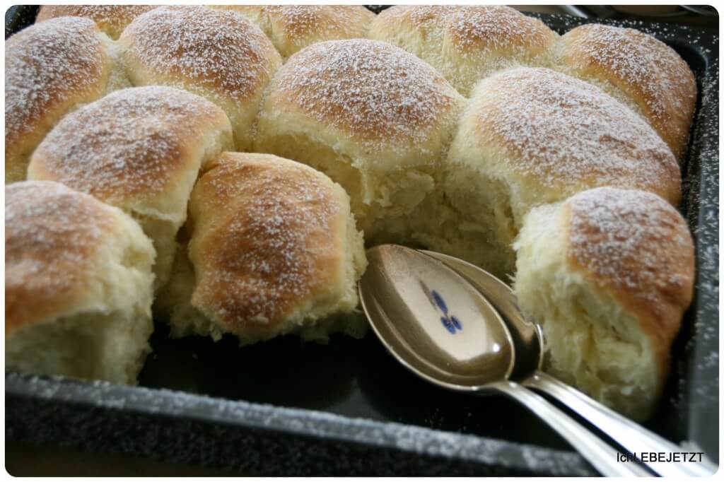 Das verlangt das große Kind seitdem es sprechen kann. Während die anderen beiden -typisch fränkisch- nach der Brezn verlangen, bestellt sie sich Milchbrötchen zum Frühstück. Fluffiger, leicht süßlicher Hefeteig mit leicht gebräunter Krume.